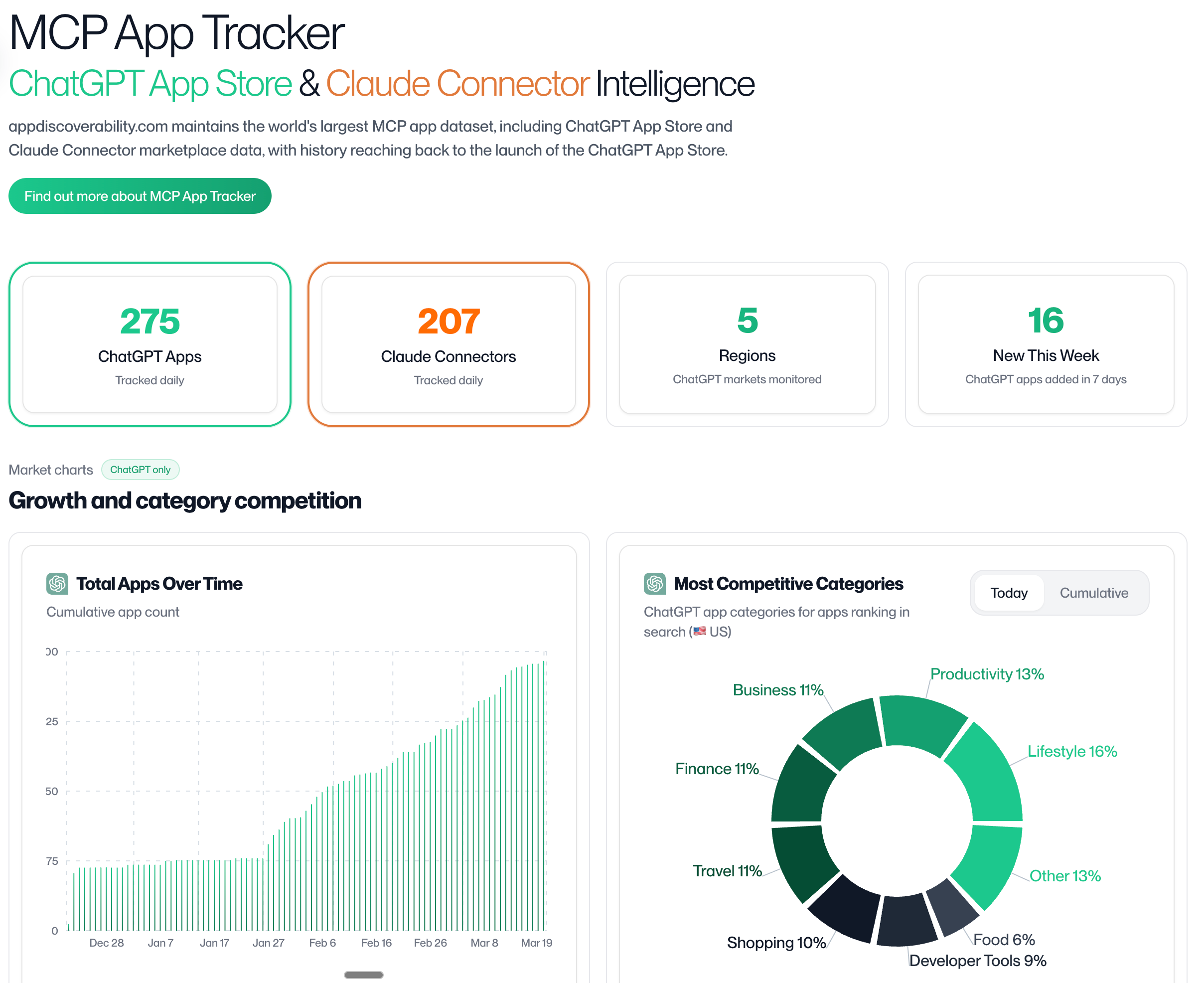 Not sure what app to create? Check the MCP App Tracker at track.appdiscoverability.com - it tracks every app in the ChatGPT and Claude ecosystem.