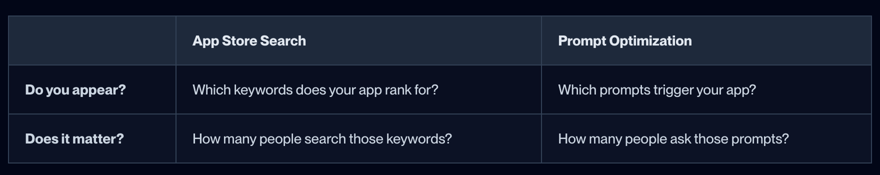 Optimize for both channels. Most developers focus on App Store search. The winners optimize for both search rankings AND prompt optimization.