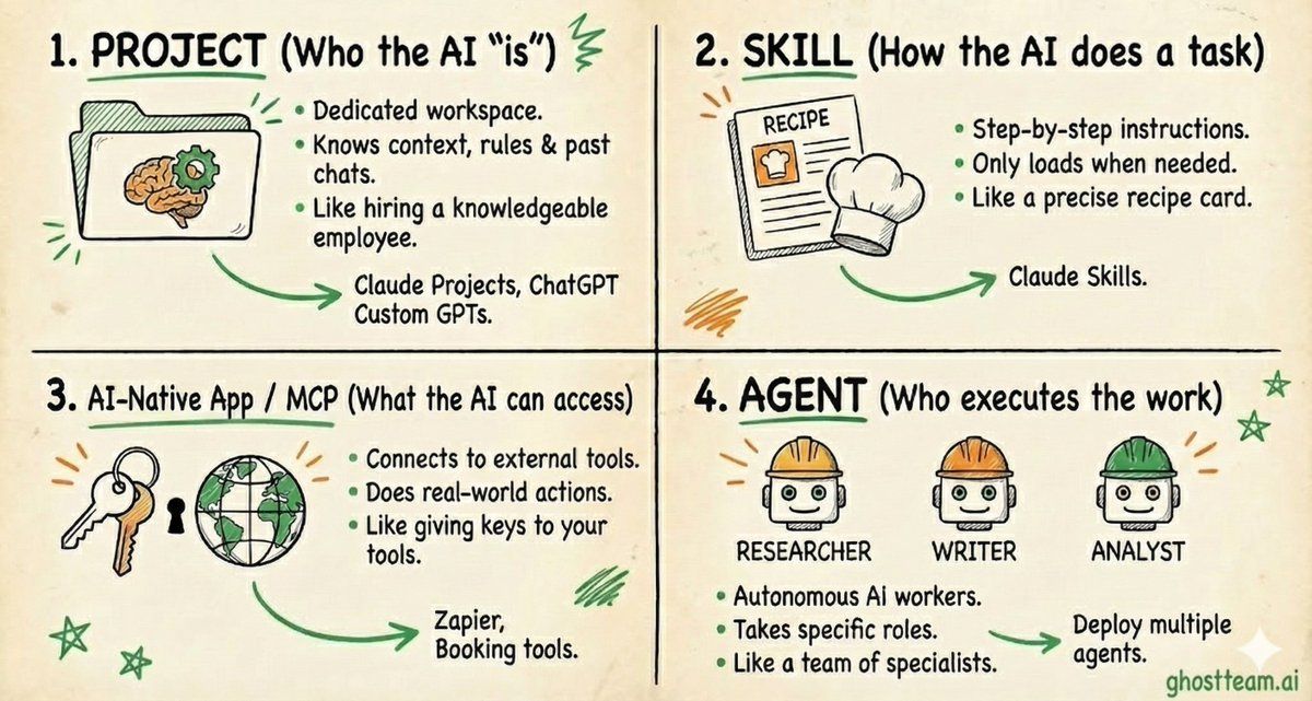 Project vs Skills vs AI-native App / MCP vs Agent